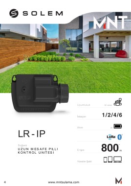 Uyumluluk 9V valves 1/2/4/6 İstasyon Akım 9V LR -IP Bağlantı * UZUN MESAFE PILLI Erişim KONTROL UNITESI 800 m Yönetim Şekli 4 www.mntsulama.com